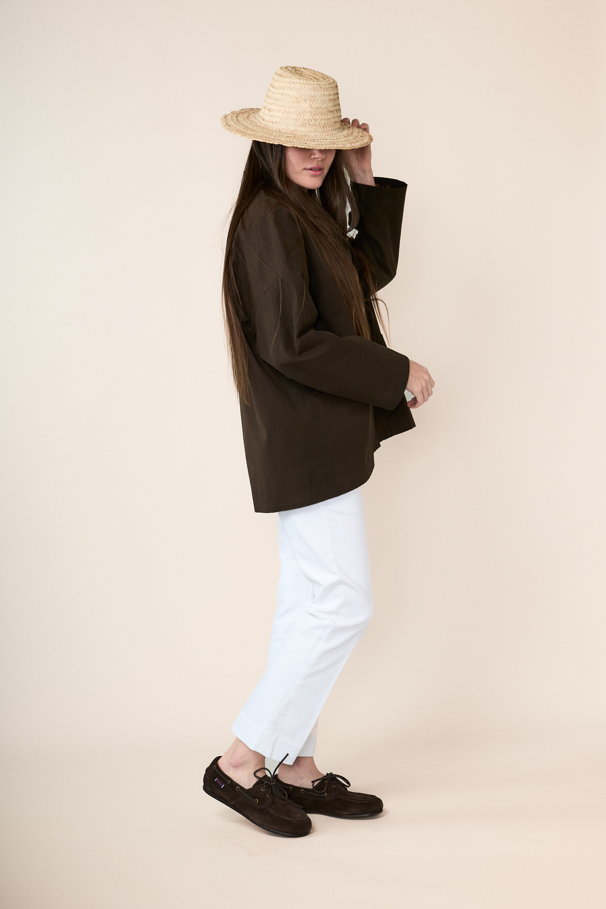 La giacca è confezionata con un cotone mano pesca, sottoposto ad un trattamento che lo rende idrorepellente.